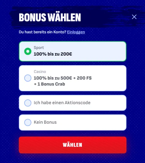 New sports bettors can receive a 100% match bonus up to €120 on their first deposit, while casino players can choose between a 100% match up to €500 with 200 free spins or a 20% cashback up to €200 for live casino play. Regular players benefit from weekly reload bonuses, weekend offers, and various cashback promotions.